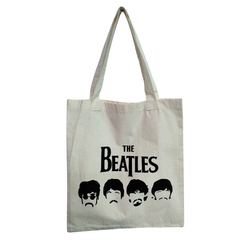 Tote bag The Beatles con diseño icónico y retro. Ideal para fans del rock clásico y amantes del estilo vintage. 🎶🖤